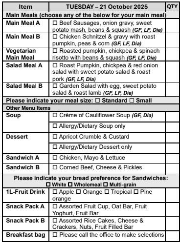 Week 2 | 21st - 24th October 2025 (Chilled Meals Only)