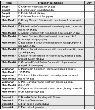 If you are over 65 years of age, we can assist you in obtaining a My Aged Care referral for you to receive discounted meals.