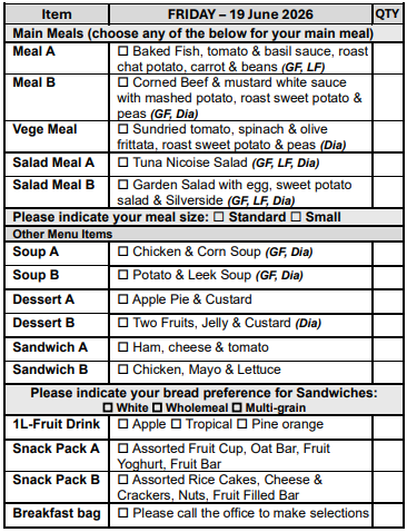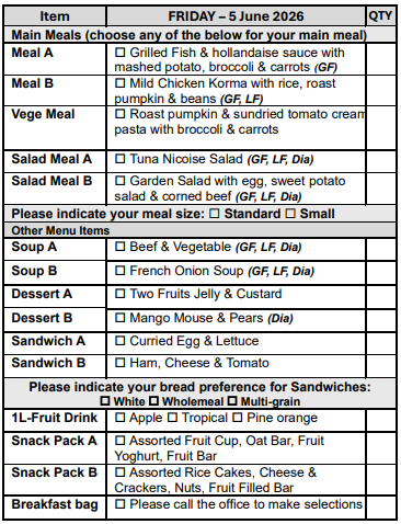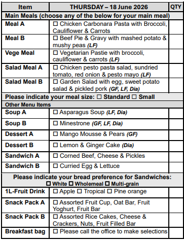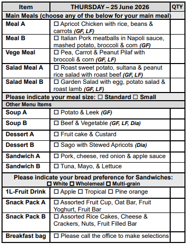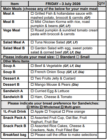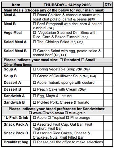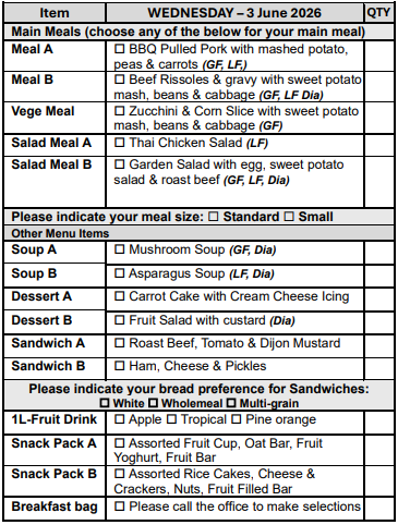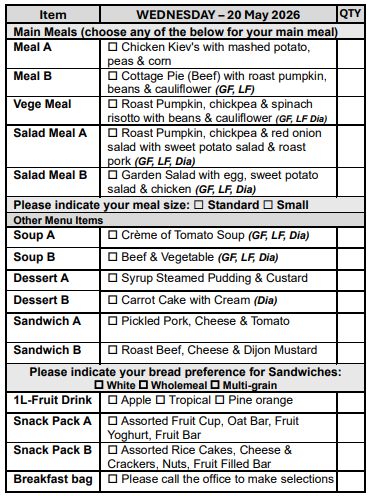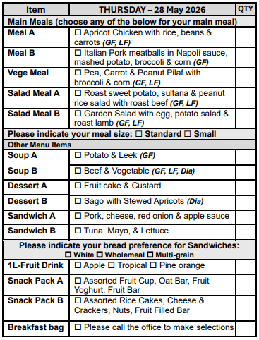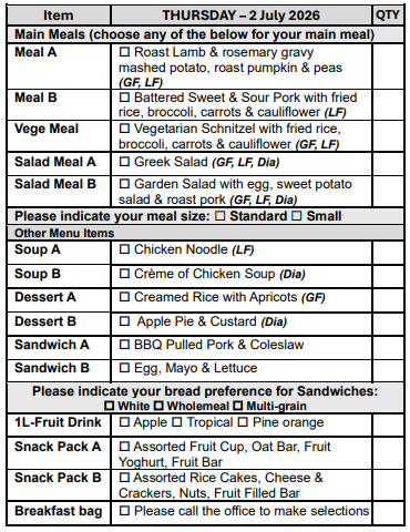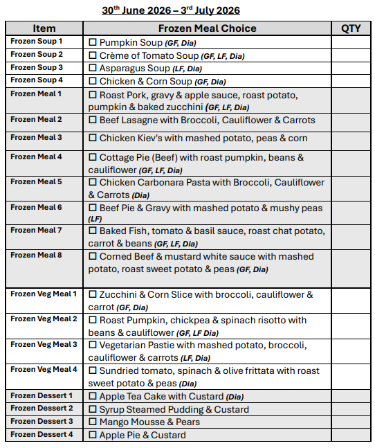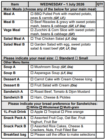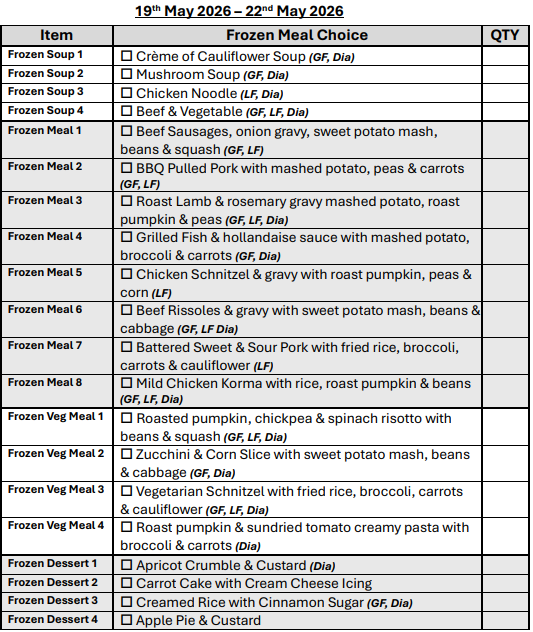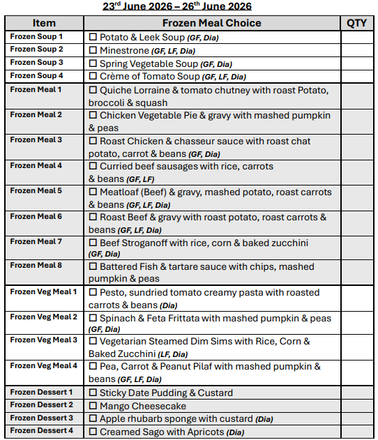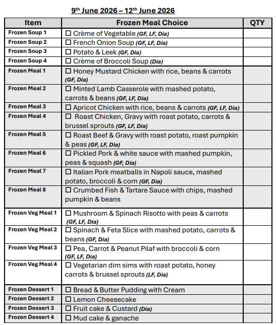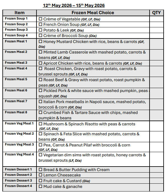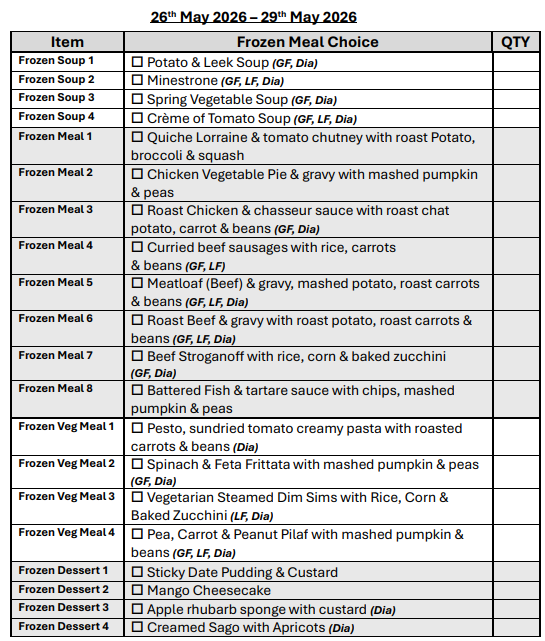 If you are over 65 years of age, we can assist you in obtaining a My Aged Care referral for you to receive discounted meals.