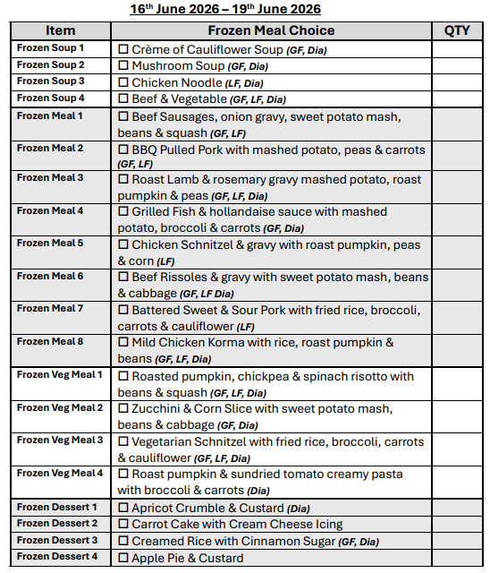 Week 6 | 16th - 19th June 2026 (Chilled Meals Only)
