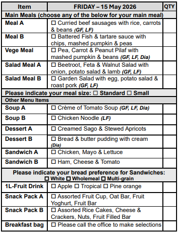 For those with medical dietary requirements, rest assured that your meals will continue to be tailored to your needs. While we can no longer accommodate personal dislikes, our diverse menu offers a variety of options to satisfy your taste buds.